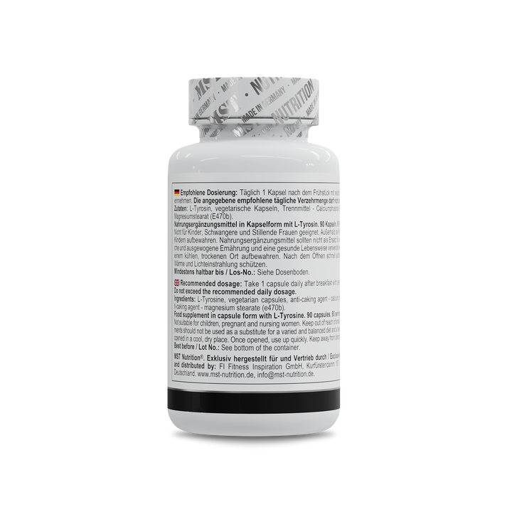MST® Nutrition L-Tyrosin 1000 90 Kapseln mit je 500 mg pro Kapsel ist eine hochwertige Nahrungsergänzung, die entwickelt wurde, um die kognitive Funktion, Stimmung und Energie zu unterstützen.