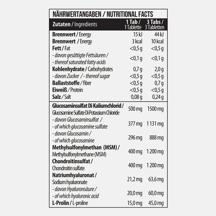 Glucosamin Chondroitin MSM + Hyaluron 90 Tabletten – MADE IN GERMANY